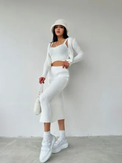ΣΕΤ ΠΑΡΑΛΙΑΣ ΛΕΥΚΟ ΠΛΕΚΤΟ ΤΟΠ ΜΕ ΦΟΥΣΤΑ ΚΑΙ ΖΑΚΕΤΑΚΙ