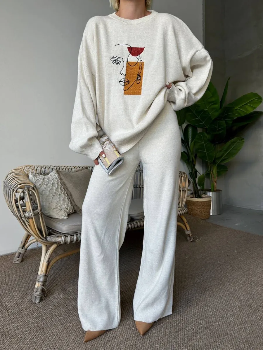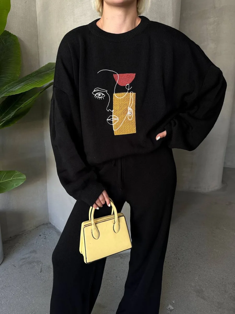 ΣΕΤ ΠΛΕΚΤΗ ΜΠΛΟΥΖΑ ΚΑΙ ΠΑΝΤΕΛΟΝΙ ΜΕ ΣΧΕΔΙΟ ΠΡΟΣΩΠΑ