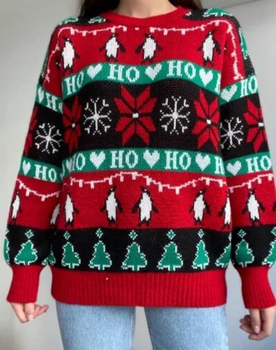 XMAS ΚΟΚΚΙΝΗ ΜΠΛΟΥΖΑ ΠΛΕΚΤΗ ΜΕ ΣΧΕΔΙΟ